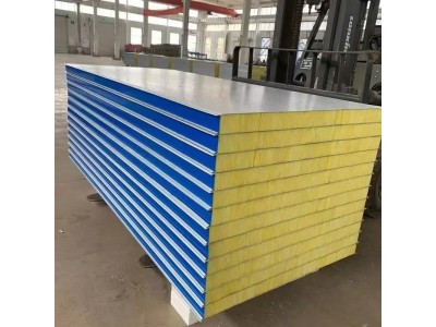 岩棉彩钢夹芯板产品特点:防火性能好,岩棉物为内芯层或玻璃纤维,可适合任意防火等级要求